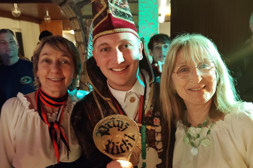 La soirée a réuni les trois délégations lors du traditionnel repas costumé. Entre éclats de rire, échanges multilingues et convivialité spontanée, la fraternité européenne prenait tout son sens. La présence de la troupe "Noda Biag’r", du prince du carnaval "Prinz Nick I" et d’une troupe de majorettes a contribué à faire de cette veillée un moment particulièrement chaleureux.