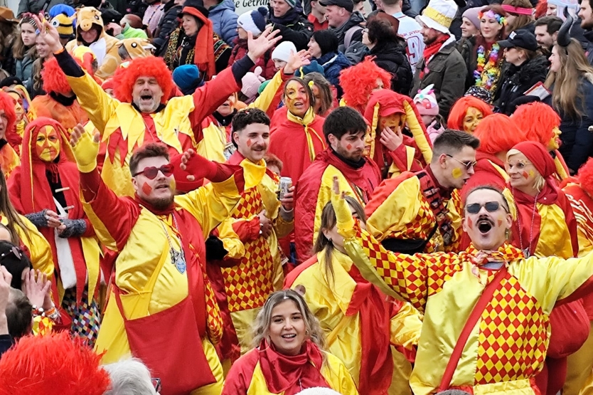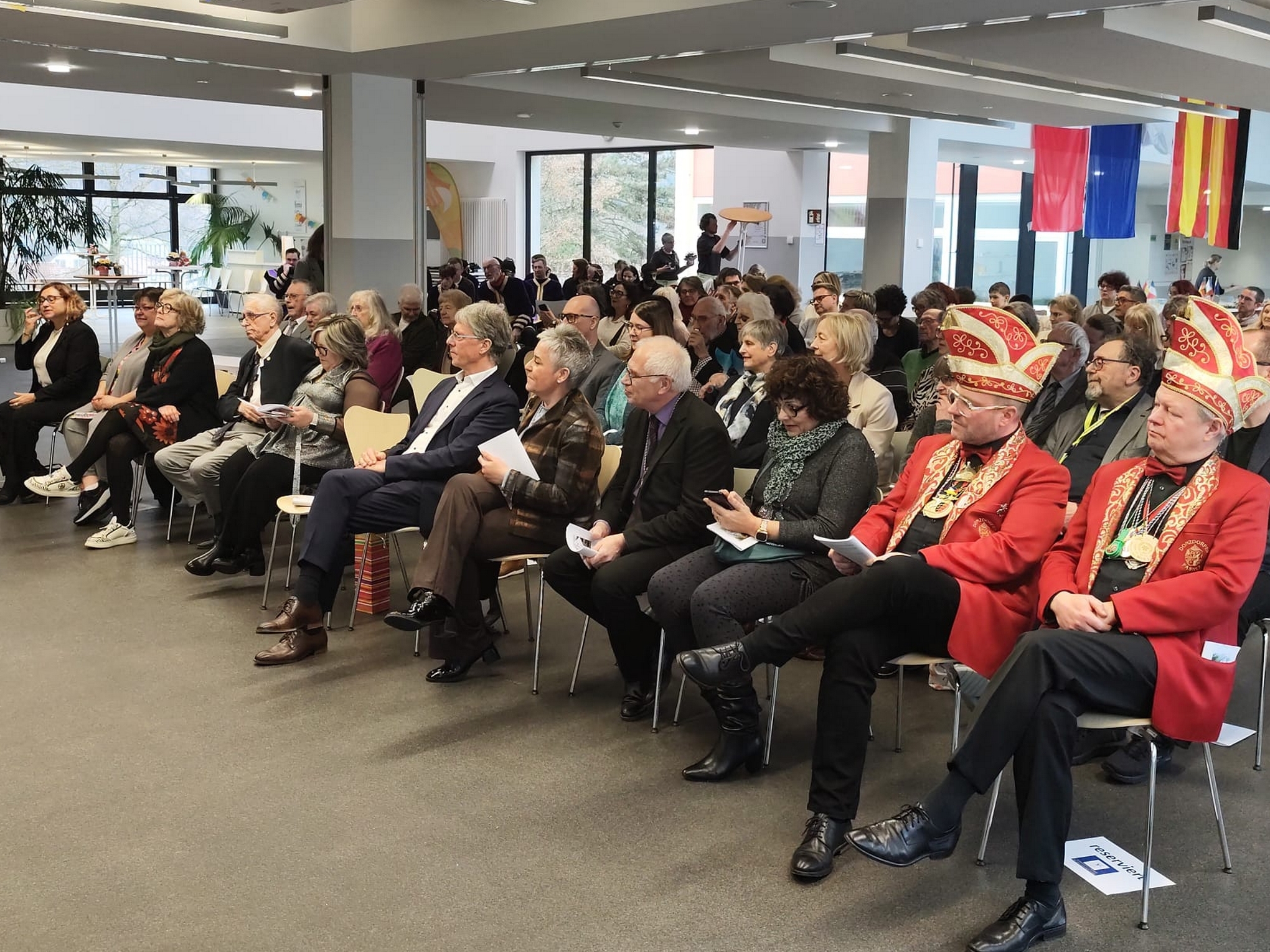 La soirée a réuni les trois délégations lors du traditionnel repas costumé. Entre éclats de rire, échanges multilingues et convivialité spontanée, la fraternité européenne prenait tout son sens. La présence de la troupe "Noda Biag’r", du prince du carnaval "Prinz Nick I" et d’une troupe de majorettes a contribué à faire de cette veillée un moment particulièrement chaleureux.