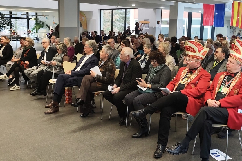 Le samedi matin était consacré au 20ᵉ anniversaire de l’association Europabaum, partenaire engagé du jumelage côté allemand. La cérémonie, organisée dans les locaux de l’école principale, a débuté de manière originale et dynamique grâce à la troupe carnavalesque de Donzdorf "Noda Biag'r". Costumes inspirés de l’Égypte antique, masques d’Anubis, cuivres et percussions : une entrée en matière festive et impressionnante.